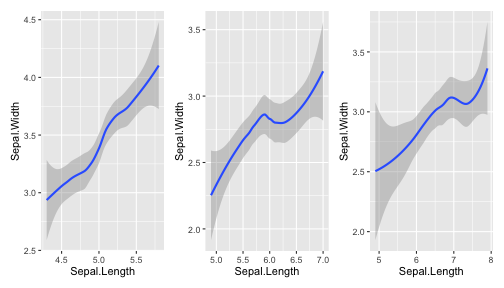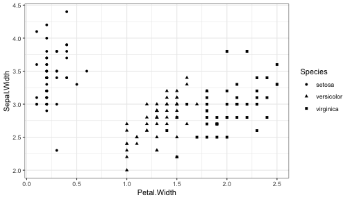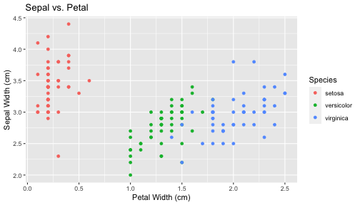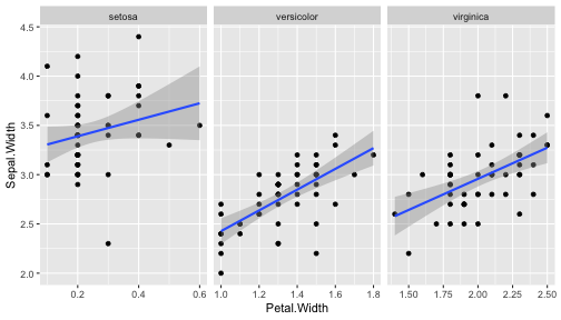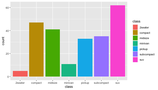 class: center, middle, inverse, title-slide .title[ # ggplot2, data visualization ] .author[ ### Mikhail Dozmorov ] .institute[ ### Virginia Commonwealth University ] .date[ ### 11-09-2022 ] --- ## Why visualize data? - Anscombe's quartet comprises four datasets that have nearly identical simple descriptive statistics, yet appear very different when graphed. (See Wikipedia link below) - 11 observations (x, y) per group .center[<img src="img/anscombe01.png" width = 800>] .small[ https://en.wikipedia.org/wiki/Anscombe%27s_quartet ] --- ## Why visualize data? - Four groups - 11 observations (x, y) per group .center[<img src="img/anscombe02.png" width = 500>] .small[ https://en.wikipedia.org/wiki/Anscombe%27s_quartet ] --- ## Why visualized data? .center[<img src="https://camo.githubusercontent.com/932518e2388b6a71c16d28598e20b3ce34000c4f3adbe7ccea90acb9e02d9274/68747470733a2f2f64616d6173736574732e6175746f6465736b2e6e65742f636f6e74656e742f64616d2f6175746f6465736b2f72657365617263682f7075626c69636174696f6e732d6173736574732f676966732f73616d652d73746174732d646966666572656e742d6772617068732f44696e6f53657175656e7469616c536d616c6c65722e676966" width = 4000px>] .small[ https://github.com/stephlocke/datasauRus ] --- ## Evolution of R graphics - Base graphics - Trellis plots - `lattice` package - Better design principles, choice of colors, symbol shapes, line styles - Known for distinct multi-panel layout - ggplot2 package - Implements Grammar of Graphics, developed by Leland Wilkinson --- class: inverse, center, middle # ggplot2 - the grammar of graphics --- ## ggplot2 package - `ggplot2` is a widely used R package that extends R's visualization capabilities. It takes the hassle out of things like creating legends, mapping other variables to scales like color, or faceting plots - _Where does the "gg" in ggplot2 come from?_ The `ggplot2` package provides an R implementation of Leland Wilkinson's *Grammar of Graphics* (1999) - The *Grammar of Graphics* allows you to think beyond the garden variety plot types (e.g. scatterplot, barplot) and the consider the components that make up a plot or graphic, such as how data are represented on the plot (as lines, points, etc.), how variables are mapped to coordinates or plotting shape or color, what transformation or statistical summary is required, and so on .small[ https://ggplot2.tidyverse.org/ ] --- ## The basics of ggplot2 graphics Specifically, **ggplot2** allows you to build a plot layer-by-layer by specifying: - **aesthetics** that map variables in the data to axes on the plot or to plotting size, shape, color, etc., - a **geom**, which specifies how the data are represented on the plot (points, lines, bars, etc.), - a **stat**, a statistical transformation or summary of the data applied prior to plotting, - **facets**, which we've already seen above, that allow the data to be divided into chunks on the basis of other categorical or continuous variables and the same plot drawn for each chunk. --- ## The basics of ggplot2 graphics - Data mapped to graphical elements - Add graphical layers and transformations - Commands are chained with "+" sign | Object | | Description | |------------|-------|--------------------------------------------------------------------| | Data | | The raw data that you want to plot | | Aethetics | aes() | How to map your data on x, y axis, color, size, shape (aesthetics) | | Geometries | geom_ | The geometric shapes that will represent the data | ``` text data + aesthetic mappings of data to plot coordinates + geometry to represent the data ``` --- ## Basic ggplot2 syntax **Specify data, aesthetics and geometric shapes** `ggplot(data, aes(x=, y=, color=, shape=, size=, fill=)) +` `geom_point()`, or `geom_histogram()`, or `geom_boxplot()`, etc. - This combination is very effective for exploratory graphs. - The data must be a data frame in a **long** (not wide) format - The `aes()` function maps **columns** of the data frame to aesthetic properties of geometric shapes to be plotted. - `ggplot()` defines the plot; the `geoms` show the data; layers are added with `+` --- ## Examples of ggplot2 graphics ``` r diamonds %>% filter(cut == "Good", color == "E") %>% ggplot(aes(x = price, y = carat)) + geom_point() # aes(size = price) + ``` Try other geoms ``` r geom_smooth() # method = lm geom_line() geom_boxplot() geom_bar(stat="identity") geom_histogram() ``` --- ## Moving beyond `ggplot` + `geoms` Customizing scales * Scales control the mapping from data to aesthetics and provide tools to read the plot (ie, axes and legends). * Every aesthetic has a default scale. To add or modify a scale, use a `scale` function. * All scale functions have a common naming scheme: `scale` `_` name of aesthetic `_` name of scale * Examples: `scale_y_continuous`, `scale_color_discrete`, `scale_fill_manual` .small[ [ggsci](https://CRAN.R-project.org/package=ggsci) R package and [Scientific Journal and Sci-Fi Themed Color Palettes for ggplot2](https://cran.r-project.org/web/packages/ggsci/vignettes/ggsci.html) ] --- ## ggplot2 example - update scale for y-axis ```r ggplot(iris, aes(x = Petal.Width, y = Sepal.Width, color=Species)) + geom_point() + scale_y_continuous(limits=c(0,5), breaks=seq(0,5,0.5)) ``` <!-- --> --- ## ggplot2 example - update scale for color ```r ggplot(iris, aes(x = Petal.Width, y = Sepal.Width, color=Species)) + geom_point() + scale_color_manual(name="Iris Species", values=c("red","blue","black")) ``` <!-- --> --- ## Split plots * Sometimes, one needs to create separate plots of subsets of data. These are called facets in ggplot2. Think `par(mfrow=c(2,2))` analogy * Use `facet_wrap()` if you want to facet by one variable and have `ggplot2` control the layout. Think 1D ribbon wrapped into 2D. Example: + `facet_wrap( ~ var)` - Use `facet_grid()` if you want to facet by one and/or two variables and control layout yourself. Think 2D grid. Examples: + `facet_grid(. ~ var1)` - facets in columns + `facet_grid(var1 ~ .)` - facets in rows + `face