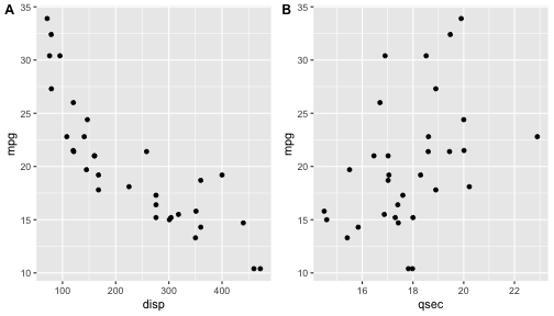 .small[ https://github.com/talgalili/heatmaply ] --- ## ggplots in a loop ```r p1 <- ggplot(mtcars, aes(disp, mpg)) + geom_point() p2 <- ggplot(mtcars, aes(qsec, mpg)) + geom_point() x <- list(p1, p2) lapply(x, print) ``` <!-- --><!-- --> ``` ## [[1]] ``` <!-- --> ``` ## ## [[2]] ``` <!-- --> ```r # for (i in 1:length(x)) { # print(x[i]) # } ``` --- ## Graphic editors - **Inkscape** - vector graphics editor. Works with Scalable Vector Graphics (SVG) format. Export in any format, at any resolution. - Note `svg` graphic device in R. `ggsave()` also saves graphs in `svg` format - **GIMP** - raster graphics editor. Think Photoshop. .small[ https://inkscape.org/ https://www.gimp.org/ [INKSCAPE VS. GIMP – WHICH ONE SHOULD YOU USE?](https://daviesmediadesign.com/inkscape-vs-gimp-which-one-should-you-use/) ] --- ## But wait... There's more - [gganimate](https://gganimate.com) - animated ggplots - [ggridges](https://wilkelab.org/ggridges/) - ridgeline plots - [ggrepel](https://ggrepel.slowkow.com) - nonoverlapping text labels - [GGally](https://ggobi.github.io/ggally/) - ggplot2 extension with pairwise plot, scatterplot, parallel coordinates plot, survival plot, network plots, and more. - [Awesome ggplot2](https://github.com/erikgahner/awesome-ggplot2)